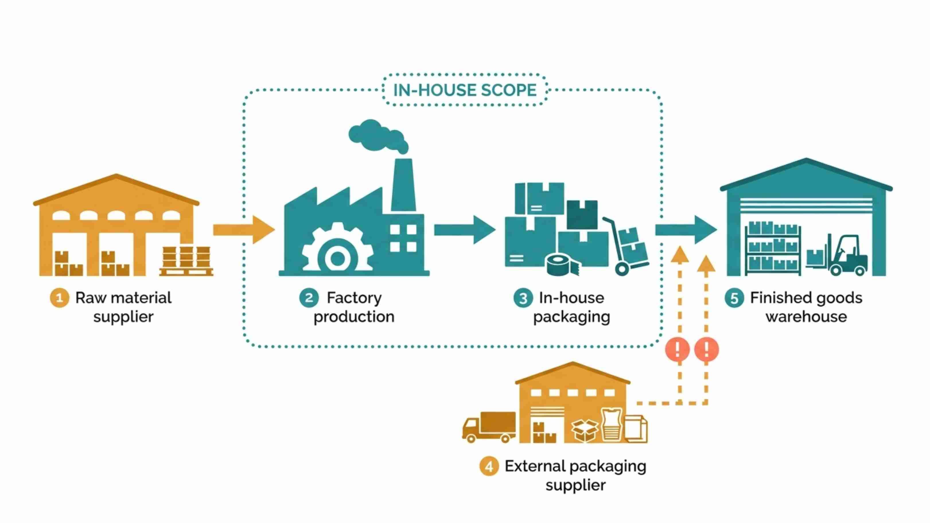 Many contract manufacturers produce the product in-house but source packaging from external suppliers: box printers, foil sachet vendors, outer carton suppliers. There's nothing wrong with that arrangement, but it has real implications. Your lead time is partly hostage to a supply chain you can't audit. Packaging defects may get less scrutiny than production defects. And packaging markups — charged by the factory on top of their supplier's price — can be significant without appearing itemized on a quote.