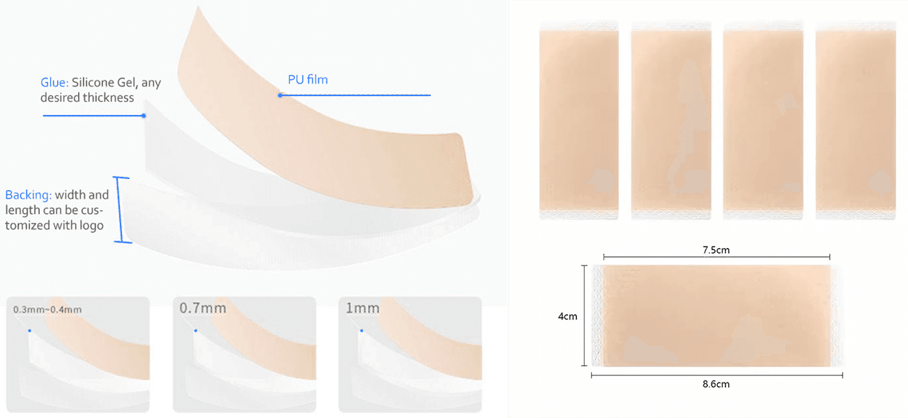High-quality medical-grade silicone gel scar patches for surgery, burn, acne, and stretch marks. Supports OEM/ODM customization in size, shape, and packaging. Certified global production.